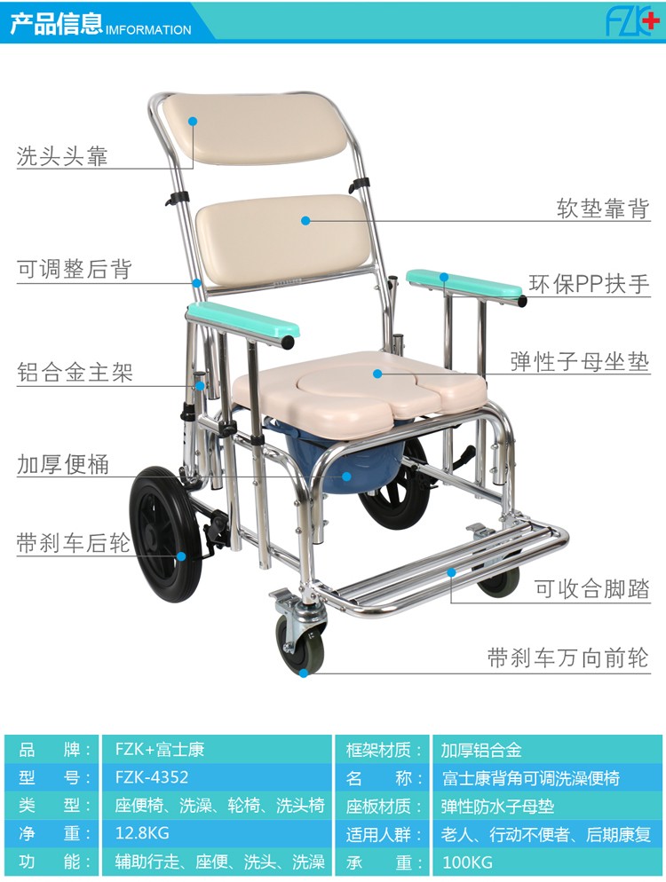 FZK-4352 背角扶手可调洗澡便椅
